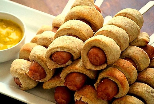 Sosisleri evvelce ısıtılmış sıvı yağ ile çok az kızartın. Daha sonra bambulara geçirin. Akabinde milföyleri şeritler halinde kesip, sosislerin etrafına dolayın. Yumurta sarısını sıvı yağ ile çırpıp milföylerin üzerine sürün. Susamları serpiştirip, yağlı kağıt serilmiş fırın tepsisine dizin. 180 derece fırında üzeri kızarana kadar pişirin.