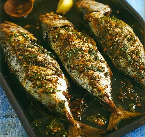 Maydanoz, limonsuyu, zeytinyağı, pul biber ve kimyonu bir kabın içinde karıştırın. Balıkların üzerlerine sürerek ister ızgarada isterseniz de 200 derece ısıtılmış fırında 15-20 dakika kadar pişirin. Kırmızı soğan ile servis edebilirsiniz.