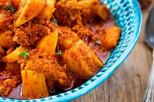Patatesleri ve soğanı soyup küp küp (zor geliyorsa yarım ay şeklinde) doğrayın. Zeytinyağı koyduğunuz tencereye evvel soğanları akabinde da salçayı alın ve kavurun. Akabinde patatesleri de ekleyin. Kavurun ve üstünü geçinceye kadar sıcak su ekleyerek baharatları da ek edip pişirin. İsterseniz soğandan sonra kıyma da ekleyebilirsiniz.